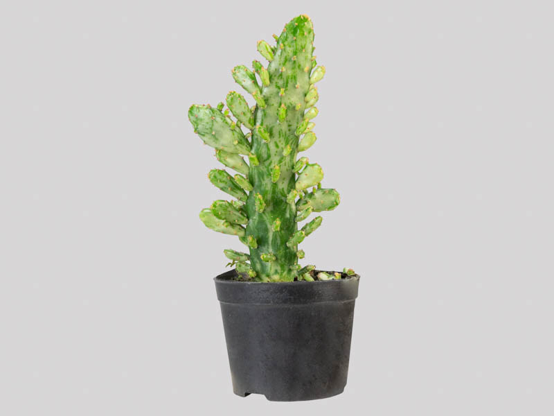 Método de propagação ou replante: Destaque uma de suas “folhas”, sempre com uma pinça para evitar o contato com os espinhos. Deixe um dia descansando para que o corte se seque e então plante num vaso contendo o substrato indicado para cactos.