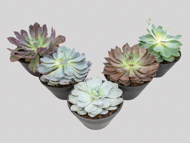 Características: Um das suculentas mais populares. De origem alemã, as Echeverias ou rosas-de-pedra são nomes utilizados para um grande grupo de espécies do gênero Echeveria. Suas folhas são rígidas e carnudas em forma de pétalas formando rosetas.