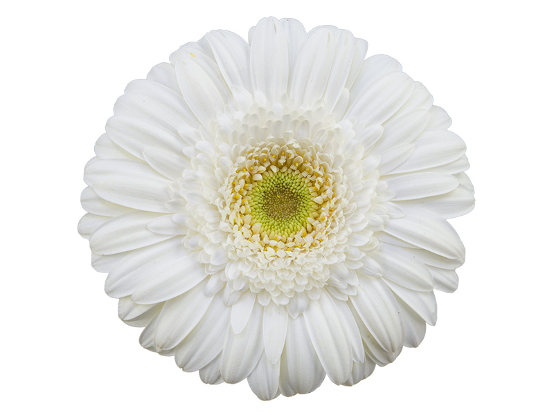 GERBERA SNOWBALL > 10 CM DIAM < 050 CM BRANCO