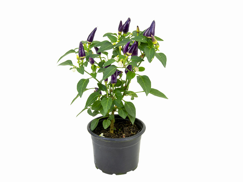 Características: O brilho do fruto colorido em contraste com o verde das folhas tem levado a pimenteira para dentro de casas, escritórios e outros ambientes. Cultivada em pequenos vasos, a planta tornou-se objeto de decoração de interiores muito apreciada. Em todas as regiões do Brasil podem ser encontradas espécies de pimentas. As mais cultivadas no país são pimenta-de-bode, malagueta, de cheiro, cumari, dedo-de-moça e pimenta-do-reino. Para a ornamentação, escolha variedades de menor porte e cor vermelha. Em geral, as sementes são híbridas, como as cultivares gion red, pirâmide e espaguetinho ornamentais e grisu f-1.