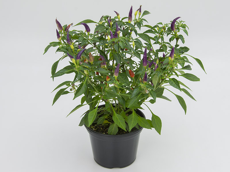Características: O brilho do fruto colorido em contraste com o verde das folhas tem levado a pimenteira para dentro de casas, escritórios e outros ambientes. Cultivada em pequenos vasos, a planta tornou-se objeto de decoração de interiores muito apreciada. Em todas as regiões do Brasil podem ser encontradas espécies de pimentas. As mais cultivadas no país são pimenta-de-bode, malagueta, de cheiro, cumari, dedo-de-moça e pimenta-do-reino. Para a ornamentação, escolha variedades de menor porte e cor vermelha. Em geral, as sementes são híbridas, como as cultivares gion red, pirâmide e espaguetinho ornamentais e grisu f-1.