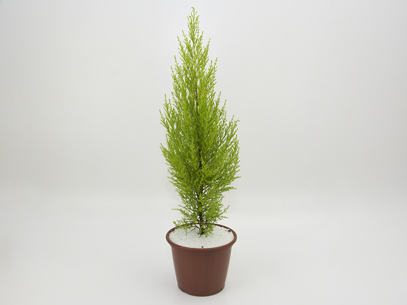 Características: Apesar de ser conhecida como Tuia Holandesa, na verdade este arbusto lenhoso é originário dos Estados Unidos, mais precisamente da Califórnia e da Inglaterra. Trata-se de uma espécie de conífera, assim como os pinheiros. Suas folhas são aromáticas (lembram cheiro de limão). No mercado brasileiro vem sendo comercializado em larga escala, principalmente na época do Natal. Assim como os pinheiros, é uma boa opção de decoração e ainda apresenta algumas vantagens sobre os modelos tradicionais: por ser uma planta cultivada em vaso desde o início, pode ser transplantada em local definitivo, como jardins e quintais, conservando a aparência e o aroma característico durante toda a temporada natalina. É comercializada em vários tamanhos, desde 40 cm até quatro metros de altura. Dependendo do porte, pode ser usada como planta decorativa em ambientes internos ou externos, pode apresentar diversos formatos: piramidal, bola e coração (obtidos com técnicas de poda e condução manual).