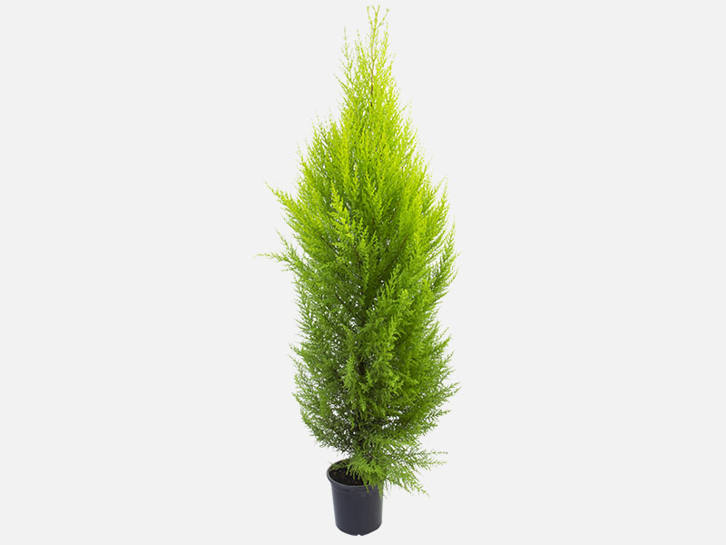 Características: Apesar de ser conhecida como Tuia Holandesa, na verdade este arbusto lenhoso é originário dos Estados Unidos, mais precisamente da Califórnia e da Inglaterra. Trata-se de uma espécie de conífera, assim como os pinheiros. Suas folhas são aromáticas (lembram cheiro de limão). No mercado brasileiro vem sendo comercializado em larga escala, principalmente na época do Natal. Assim como os pinheiros, é uma boa opção de decoração e ainda apresenta algumas vantagens sobre os modelos tradicionais: por ser uma planta cultivada em vaso desde o início, pode ser transplantada em local definitivo, como jardins e quintais, conservando a aparência e o aroma característico durante toda a temporada natalina. É comercializada em vários tamanhos, desde 40 cm até quatro metros de altura. Dependendo do porte, pode ser usada como planta decorativa em ambientes internos ou externos, pode apresentar diversos formatos: piramidal, bola e coração (obtidos com técnicas de poda e condução manual).